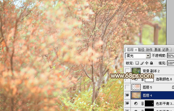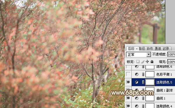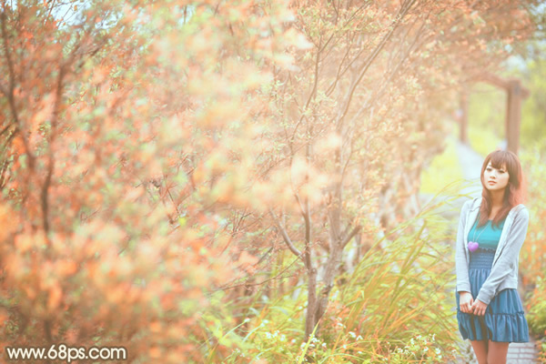 粉红色是比较时尚的颜色,在花丛中拍摄的图片最适合这种颜色。如果图片中没有红色,可以在调色之前把图片中的暖色或某一种颜色转为红色,然后再调淡就可以得到粉红色。