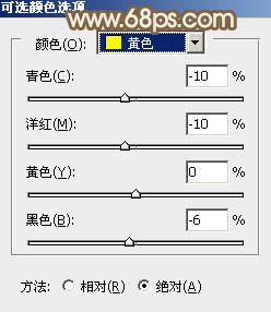 2、创建可选颜色调整图层,对黄色进行调整,参数及效果如下图。这一步给图片增加更多暖色。