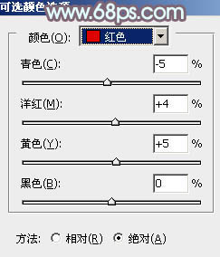3、创建可选颜色调整图层,对红、黄、白、中性色进行调整,参数设置如图9 - 12,效果如图13。这一步主要把图片中的橙黄色调亮。