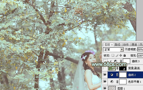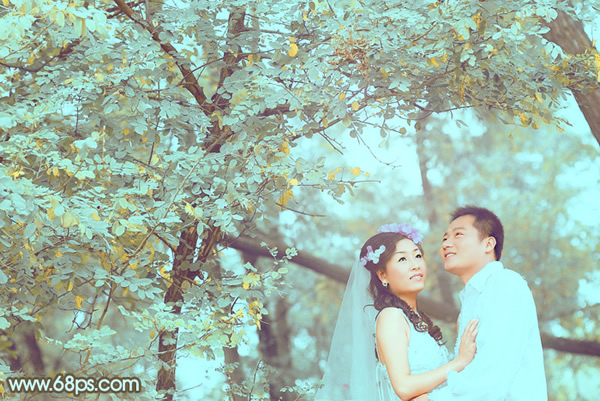 素材图片有点偏灰,人物部分不够突出。处理的时候可以适当把背景颜色调统一,并适当柔化处理,这样可以更好突出人物部分。