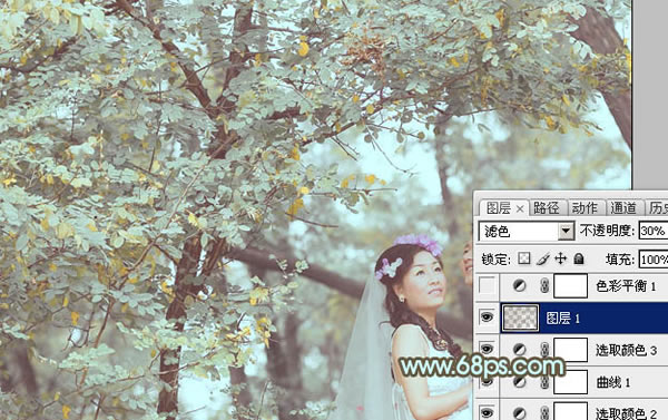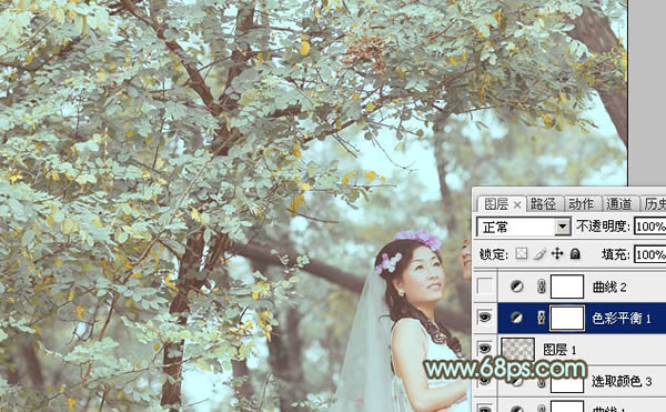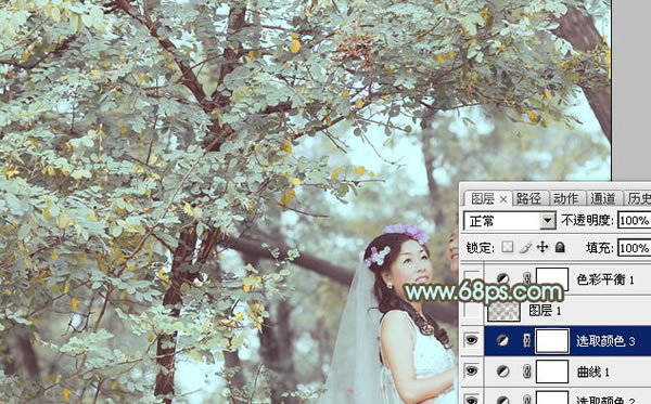 11、同上的方法用色彩平衡及可选颜色等微调一下人物肤色,效果如下图。