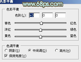 7、创建色彩平衡调整图层,对阴影、中间调、高光进行调整,参数设置如图16 - 18,效果如图19。这一步微调图片暗部及高光部分的颜色。