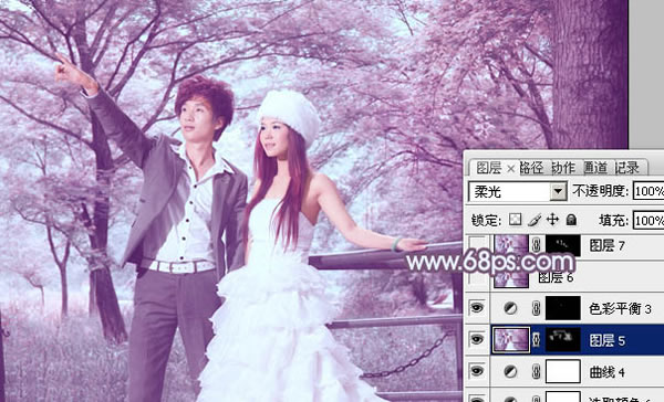 13、新建一个图层,盖印图层,混合模式改为“柔光”,按住Alt键添加图层蒙版,用白色画笔把背景需要变亮的部分擦出来,效果如下图。