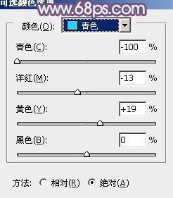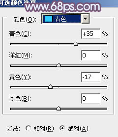 5、创建可选颜色调整图层,对青色进行调整,参数及效果如下图。这一步把图片中的青色稍微调淡。