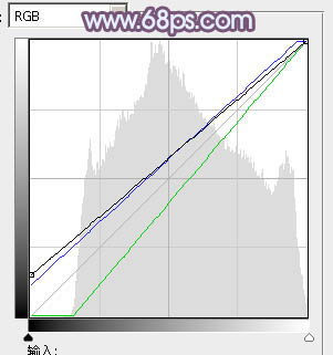 1、打开素材图片,创建曲线调整图层,对RGB通道进行调整,把暗部稍微调亮一点,参数及效果如下图。
