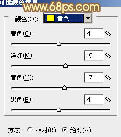 1、打开素材图片,创建可选颜色调整图层,对黄、绿、青、白进行调整,参数设置如图1 - 4,效果如图5。这一步把背景部分的主色转为橙黄色。