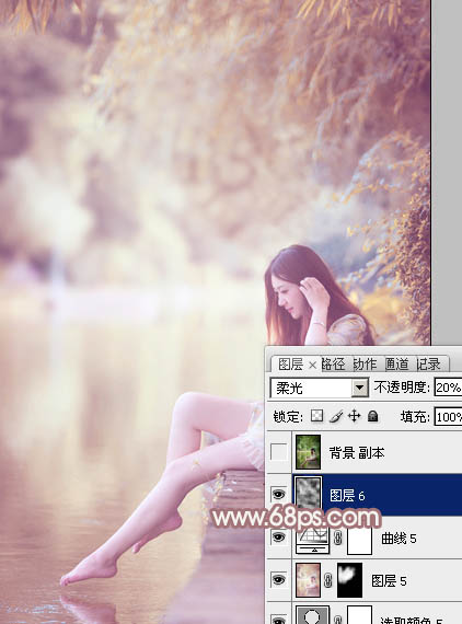 13、新建一个图层,按字母键“D”把前,背景颜色恢复到黑白,执行:滤镜 > 渲染 > 云彩,确定后把图层混合模式改为“柔光”,不透明度改为:20%,效果如下图。