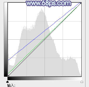 3、创建曲线调整图层,对绿,蓝通道进行调整,参数及效果如下图。这一步主要给图片暗部增加蓝色。