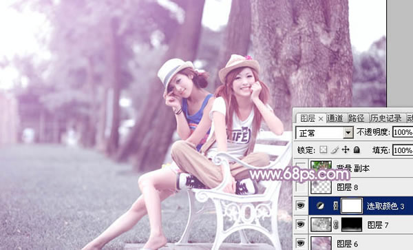 12、创建可选颜色调整图层,对洋红,白色进行调整,参数及效果如下图。这一步微调主色及高光部分的颜色。