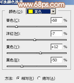 1、打开素材图片,创建可选颜色调整图层,对黄、绿、中性色进行调整,参数设置如图1 - 3,效果如图4。这一步把地面部分的颜色转为橙黄色。