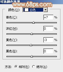 9、创建可选颜色调整图层,对红、黄、白、中性色进行调整,参数设置如图18 - 21,效果如图22。这一步主要把暗部的红色调亮。