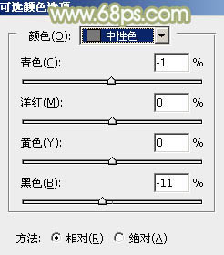 1、打开素材图片,创建可选颜色调整图层,对黄、绿、中性色进行调整,参数设置如图1 - 3,效果如图4。这一步把背景中的绿色调淡。