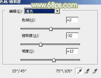 4、创建色相/饱和度调整图层,对黄色进行调整,是的降低饱和度,把主色转为较为中性的暖色。