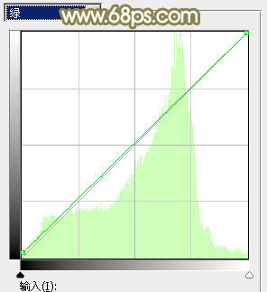 4、创建曲线调整图层,对RGB,绿通道进行调整,参数及效果如下图。这一步把图片主色稍微调淡一点。