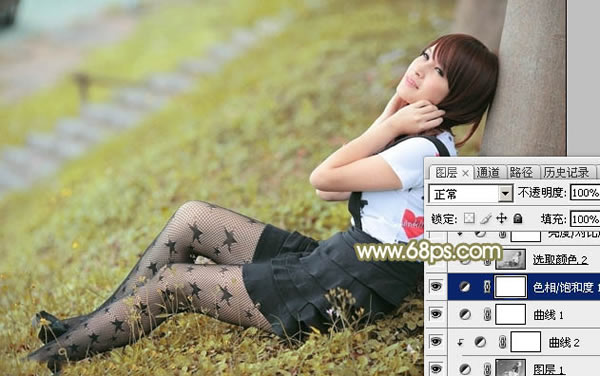 素材图片主色由黄绿色构成,转黄褐色的时候,直接用可选颜色工具转为初步的主色,然后给暗部多增加一点褐色,高光部分增加一点淡黄色即可。