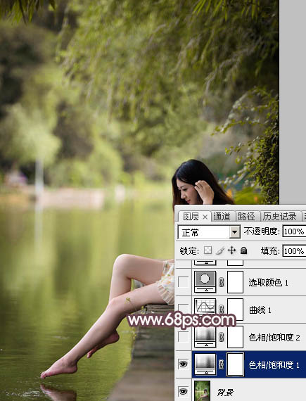 2、再创建色相/饱和度调整图层,对全图及黄色进行调整,参数设置如图5,6,效果如图7。这一步主要降低全图及黄色部分的饱和度。