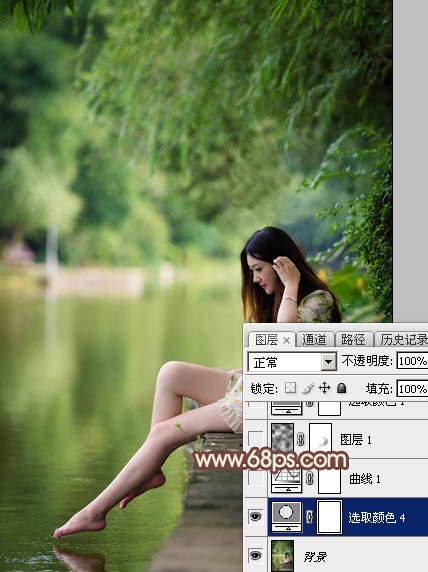 1、打开素材图片,创建可选颜色调整图层,对绿色进行调整,参数及效果如下图。这一步给图片增加绿色。