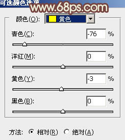 5、创建可选颜色调整图层,对黄,中性色进行调整,参数及效果如下图。这一步给图片增加红色。