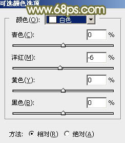 18、创建可选颜色调整图层,对白色进行调整,参数及效果如下图。这一步加强图片高光颜色。