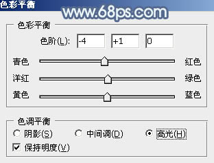 17、创建色彩平衡调整图层,对阴影,高光进行调整,参数及效果如下图。这一步加强图片暗部及高光颜色。