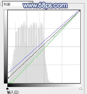 11、按Ctrl + Alt + 2 调出高光选区,按Ctrl + Shift + I 反选,然后创建曲线调整图层,对RGB、绿,蓝通道进行调整,参数及效果如下图。这一步把暗部稍微调亮,并增加蓝紫色。
