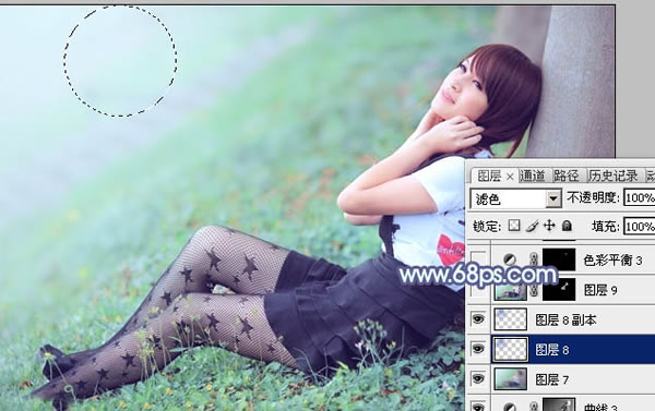 4、创建可选颜色调整图层,对黄、绿,青进行调整,参数设置如图8 - 10,效果如图11。这一步把图片中的青绿色稍微调淡一点。