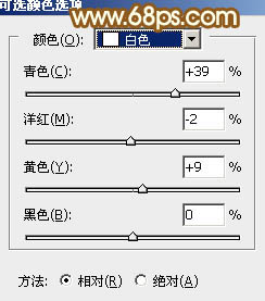 15、创建可选颜色调整图层,对红、黄,白进行调整,参数设置如图32 - 34,效果如图35。这一步微调图片中的暖色。