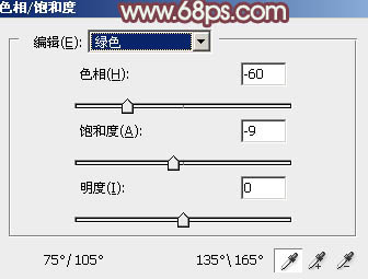2、创建色相/饱和度调整图层,对黄、绿、青进行调整,参数设置如图4 - 6,效果如图7。这一步快速把图片的主色转为中性色。
