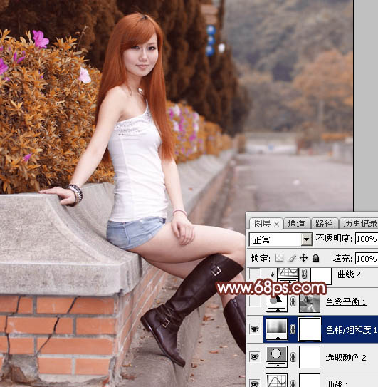 素材图的中间调颜色比较多,分布也比较均匀,整体看上去比较单调。调色的时候可以先把主色转为暖色,然后在局部增加一些较亮的高光,边缘部分加上暗角,这样图片的次感就会强很多。