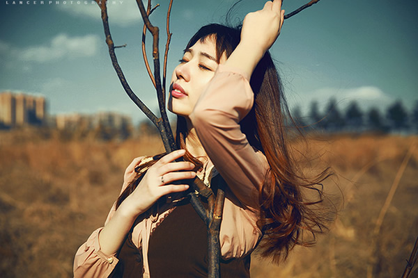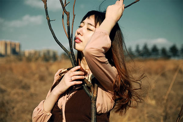 首先素材图拍摄的非常专业,作者选好景后,特意根据景点的特征选择合适的服饰及道具,拍出的效果非常有意境,也非常不错;后期只需要简单润色,加强意境,再美化一下人物即可。