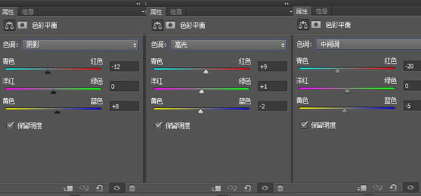 2、创建色彩平衡调整图层,参数及效果如下图。
