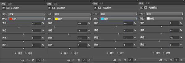 3、创建可选颜色调整图层,参数如戏。色彩看起来更有层次感。