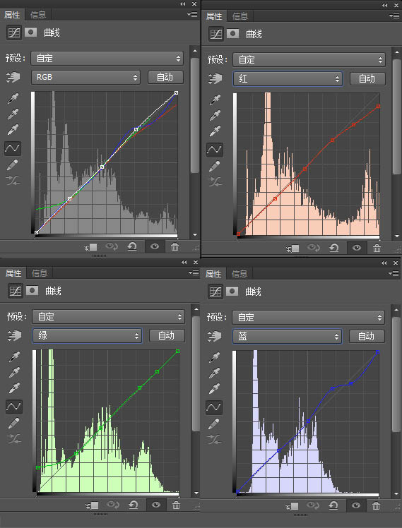 7、创建曲线调整图层,参数如下,这里的调整主改善暗红色,也要注意看蒙板。