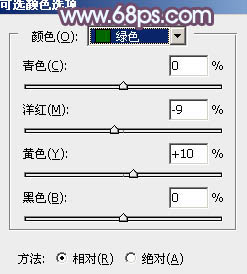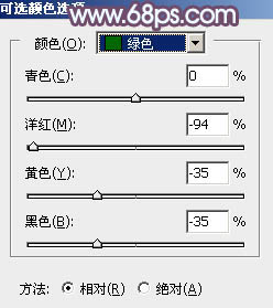 15、创建可选颜色调整图层,对黄、绿、青进行调整,参数设置如图32 - 34,效果如图35。这一步微调图片中的青绿色。