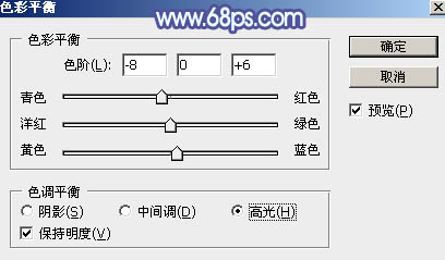 8、创建色彩平衡调整图层,对阴影、中间调、高光进行调整,参数设置如图20 - 22,确定后按Ctrl + Alt + G 创建剪切蒙版,效果如图23。
