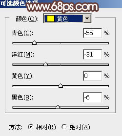 2、创建可选颜色调整图层,对黄色,中性色进行调整,参数及效果如下图。这一步把图片中的黄色转为橙黄色。