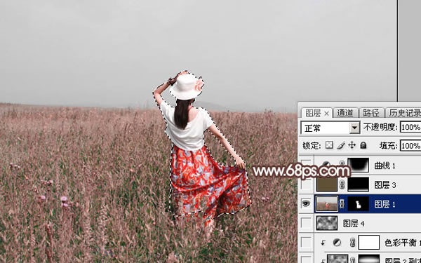4、新建一个图层,按Ctrl + Alt + Shift + E 盖印图层。按住Alt键添加图层蒙版,用白色画笔把人物部分擦出来,如下图。
