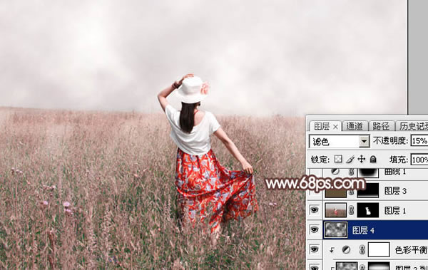 8、新建一个图层,选择菜单:滤镜 > 渲染 > 云彩,确定后把混合模式改为“滤色”,不透明度改为:15%,效果如下图。