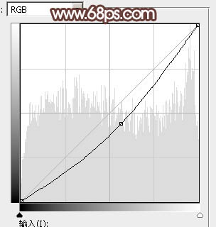 16、创建曲线调整图层,对RGB通道进行调整,参数设置如图26,确定后把蒙版填充黑色,用白色画笔把人物衣服及背光区域擦出来,效果如图27。