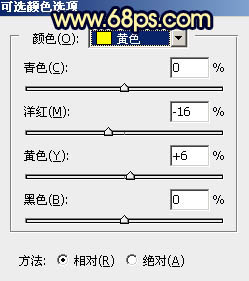 2、创建可选颜色调整图层,对黄色,白色进行调整,参数及效果如下图。这一步给图片增加橙黄色。