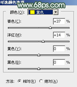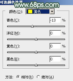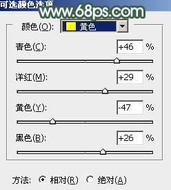15、创建可选颜色调整图层,对黄、白、黑进行调整,参数设置如图33 - 35,效果如图36。这一步微调图片暗部及高光颜色。