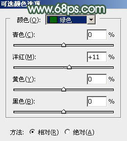 9、创建可选颜色调整图层,对绿、青、白进行调整,参数设置如图24 - 26,效果如图27。这一步把图片中的绿色调暗一点。