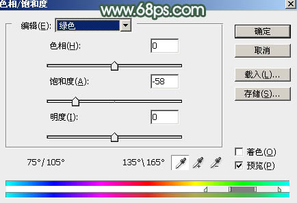 4、创建色相/饱和度调整图层,对全图、红、黄、绿进行调整,参数设置如图10 - 13,效果如图14。这一步快速把图片主色转为中性绿色。
