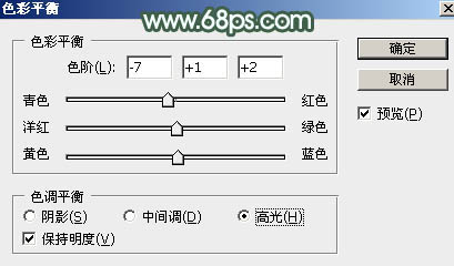 8、创建色彩平衡调整图层,对阴影,高光进行调整,参数设置如图21,22,效果如图23。这一步主要给图片高光部分增加淡青色。