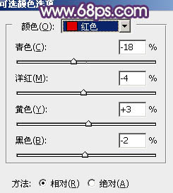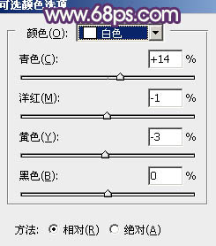 4、创建可选颜色调整图层,对红、黄、绿、青、蓝、白、中性、黑进行调整,参数设置如图14 - 21,效果如图22。这一步主要把图片中的绿色转为黄绿色。