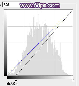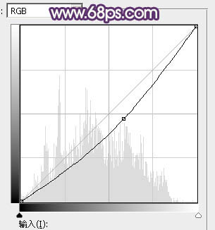 12、创建曲线调整图层,对RGB通道进行调整,参数设置如图32,确定后把蒙版填充黑色,用白色画笔把人物背光区域擦出来,效果如图33。