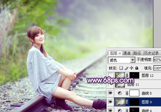 13、新建一个图层,盖印图层。混合模式改为“滤色”,不透明度改为:60%。按住Alt键添加图层蒙版,用透明度较低的白色画笔把人物右侧边缘受光区域擦亮一点,效果如下图。