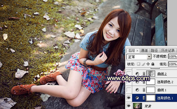 1、打开原图素材,创建可选颜色调整图层,对黄、绿、黑进行调整,参数设置如图1 - 3,效果如图4。这一步主要把图片中的黄绿色转为黄褐色。
