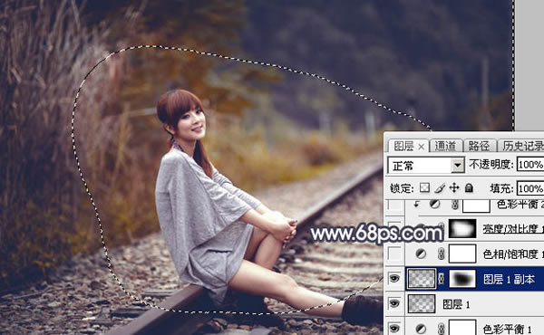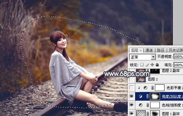 5、按Ctrl + J 把当前纯色调整图层复制一层,然后在蒙版上用柔边黑色画笔把中间区域擦出来,效果如下图。这一步给图片增加暗角。