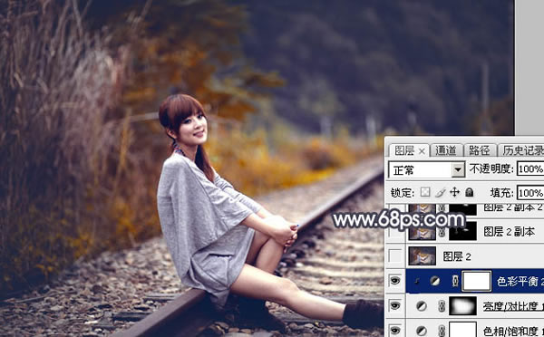 4、按Ctrl + Alt + 2 调出高光选区,再按Ctrl + Shift + I 反选得到暗部选区,然后创建纯色调整图层,颜色设置为暗蓝色:#1B2742,确定后效果如下图。这一步快速把图片调暗,增加明暗对比。